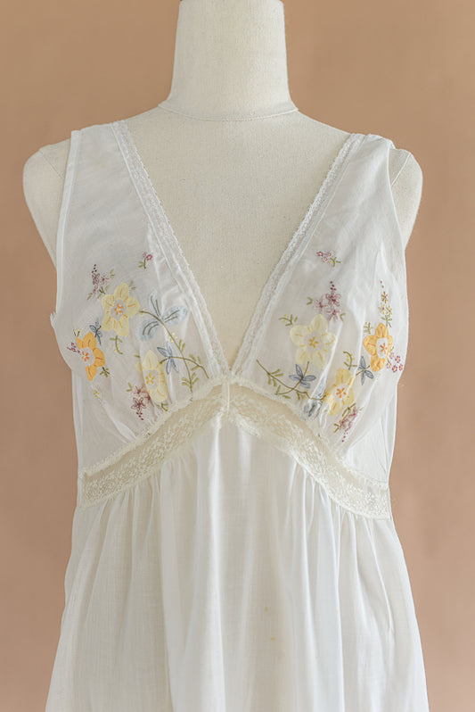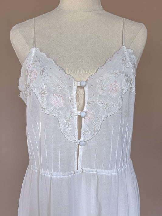 VINTAGE 1940's Cotton Flower Embroidered Maxi Nightgown Dress S/M