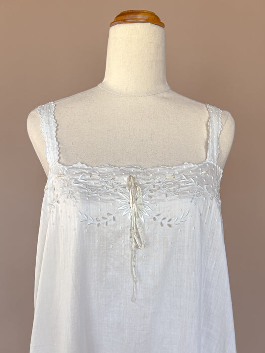 VINTAGE 1900's Edwardian Embroidered White Cotton Maxi Nightgown L/XL