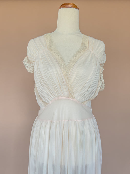 VINTAGE 1940's Sheer Light Pink Pleated Maxi Nightgown Dress S/M