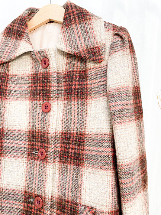 VINTAGE 1960's Kids Plaid Check Wool Coat 10-14