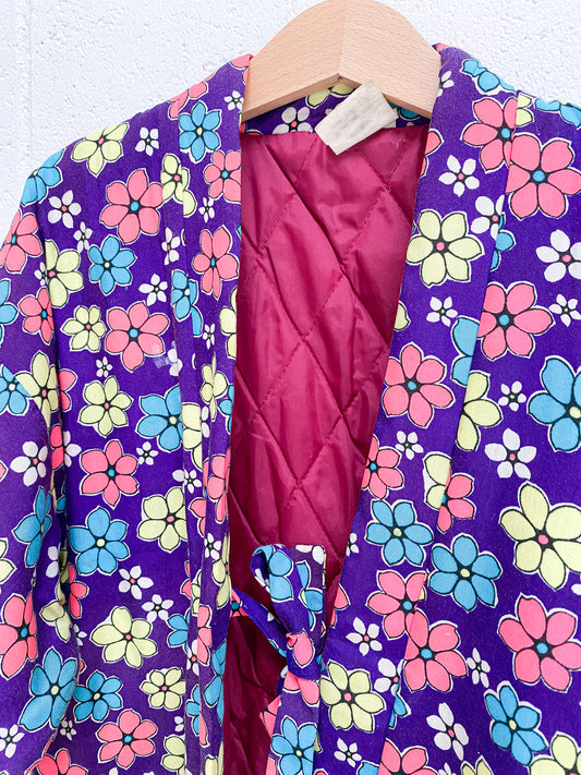 VINTAGE Floral Thick Quilted Kimono 8 And Older