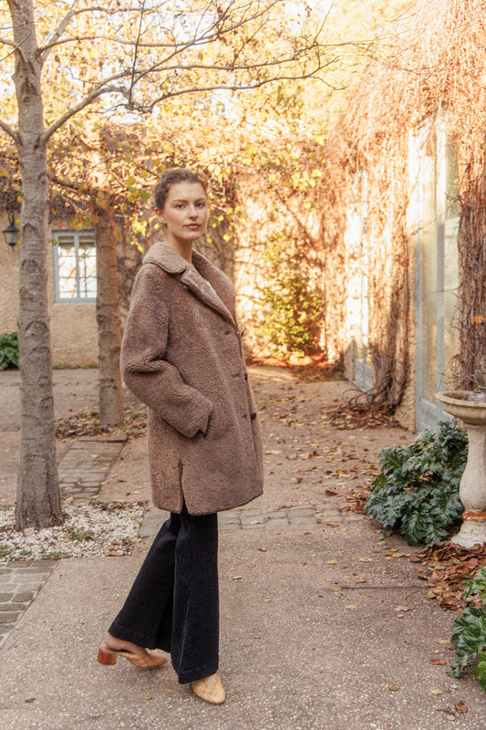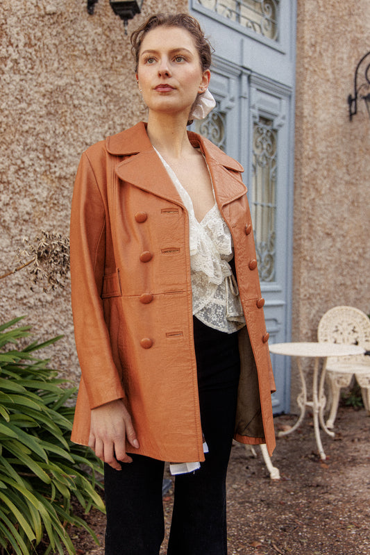 VINTAGE Leather Trimmed Shearling Coat Jacket M/L