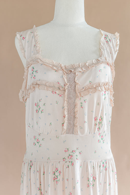 VINTAGE 1940's Pink Floral Maxi Nightgown Dress S/M/L
