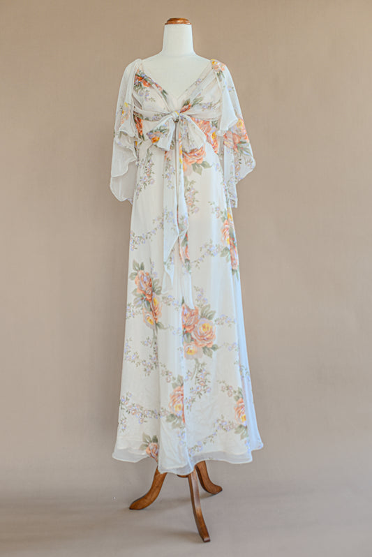 VINTAGE 1960's Flowy Floral Capelet Dress S/M
