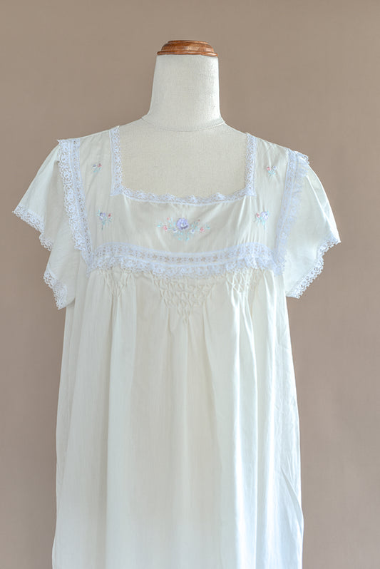 VINTAGE Antique Flower Embroidered Cotton Voile Maxi Nightgown S/M/L