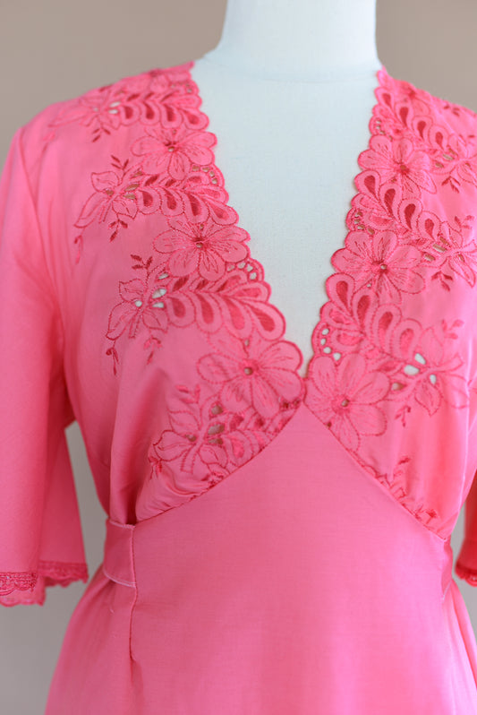 VINTAGE Embroidered Coral Pink Maxi Nightgown Dress M