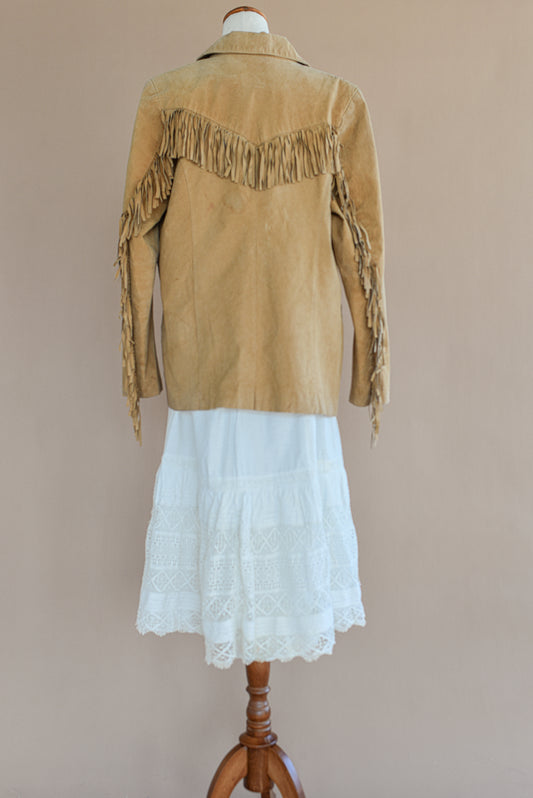 VINTAGE Tan Suede Leather Fringed Jacket M/L