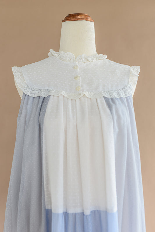 VINTAGE Sally Brown Swiss Dot Cotton Blue And White Patchwork Midi Dress S/M