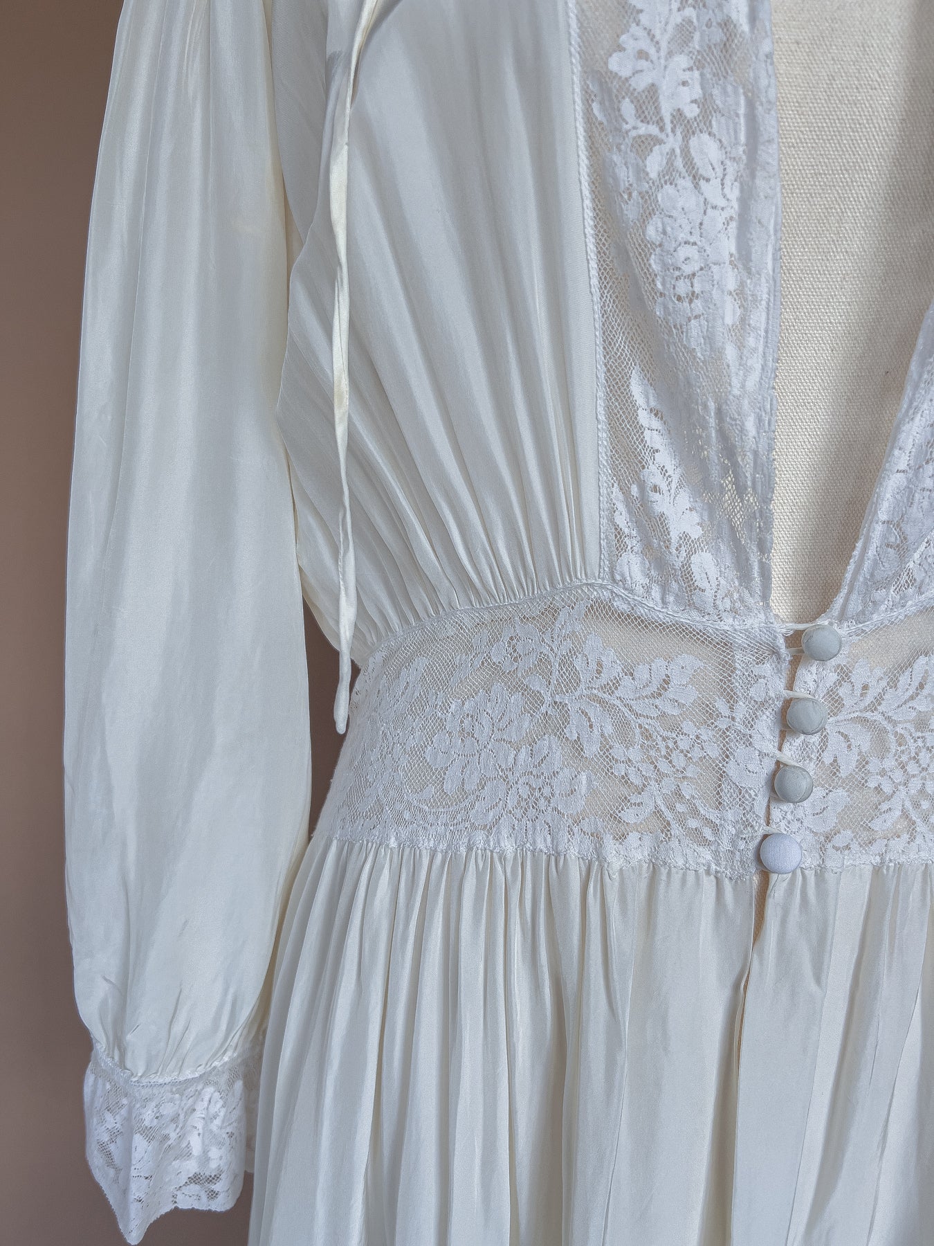 VINTAGE 1940's White Bridal Peignoir Nightgown Robe S