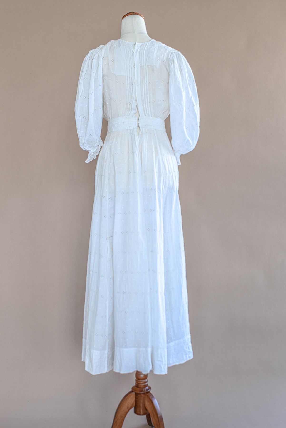 VINTAGE 1900's Edwardian Cotton Broderie Anglaise Dress XS