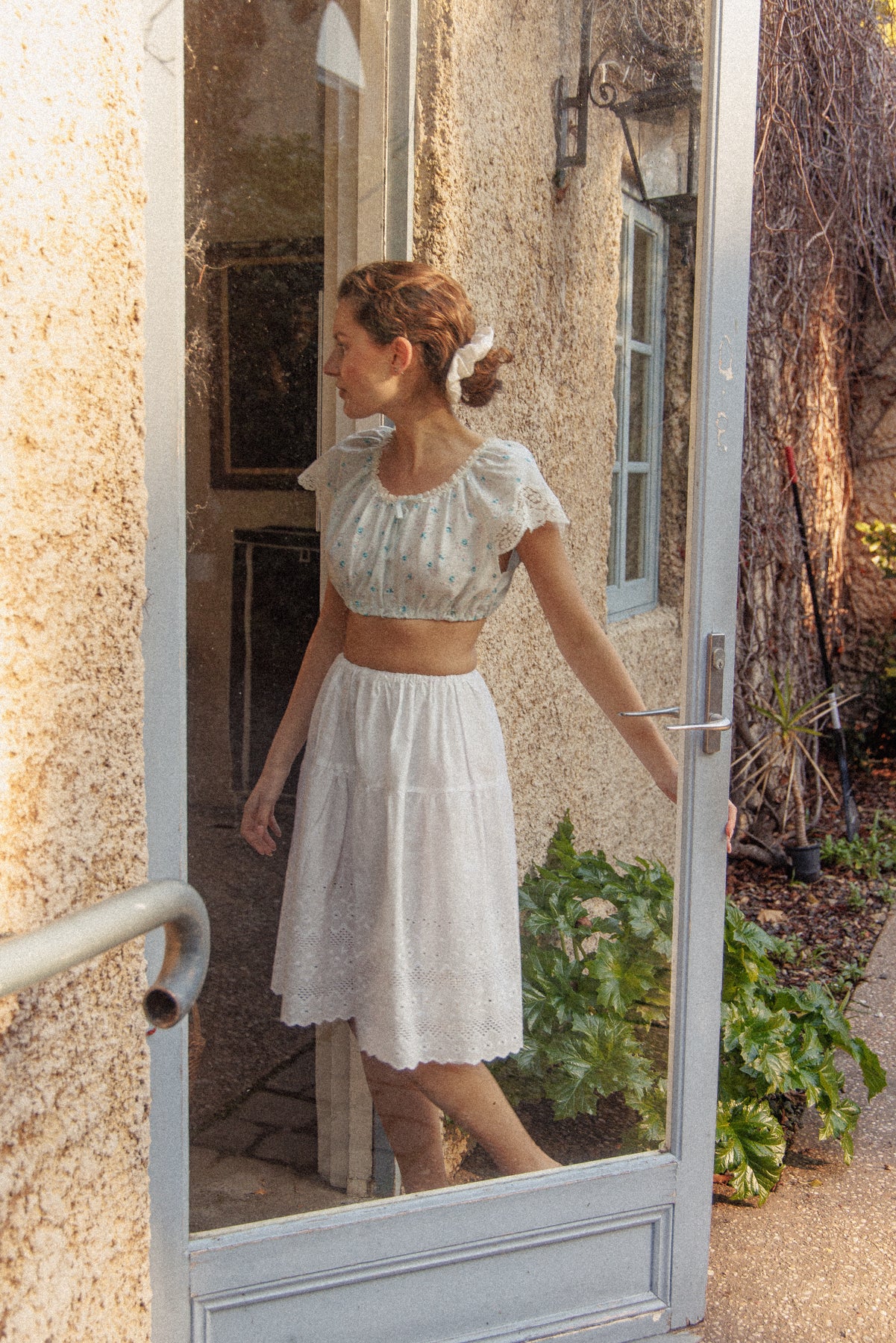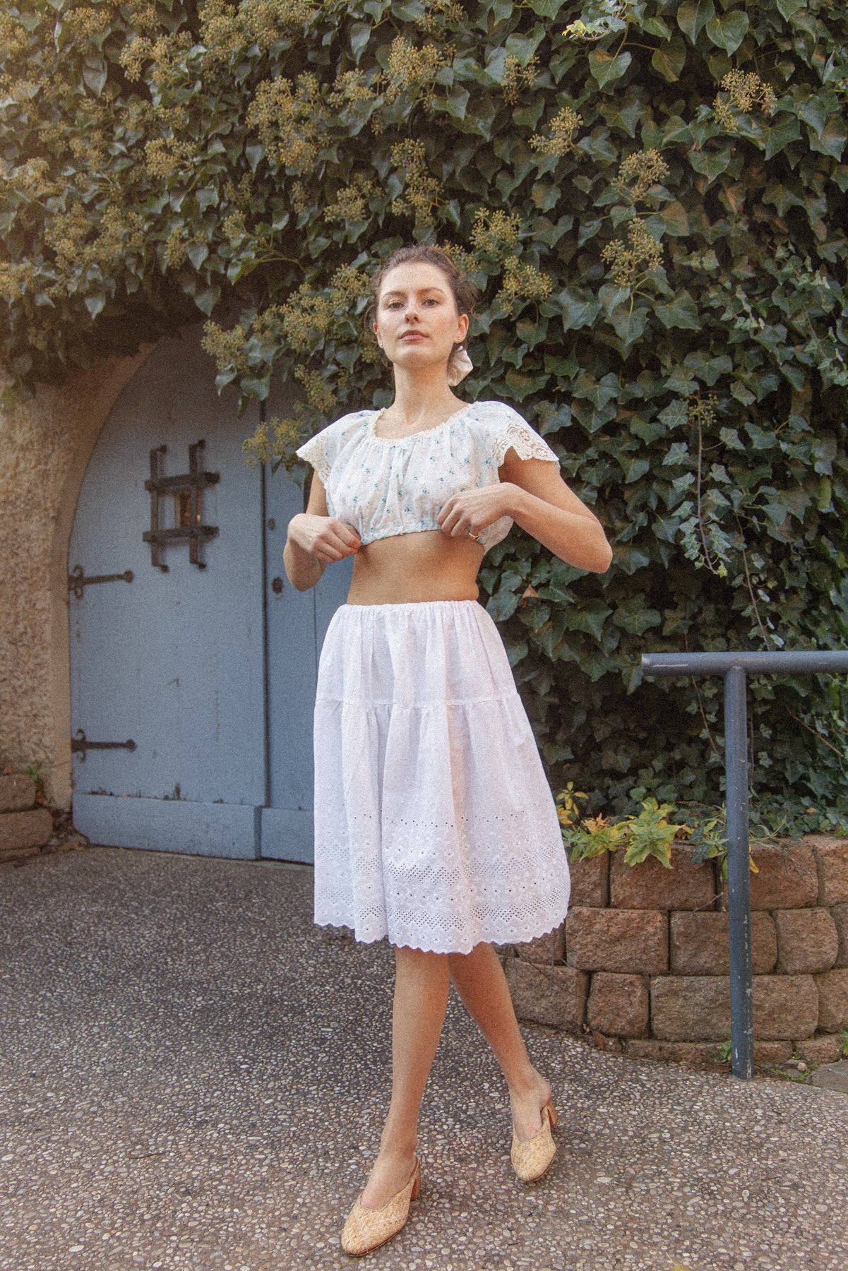 VINTAGE Reworked Blue Floral Cropped Cami XS/S