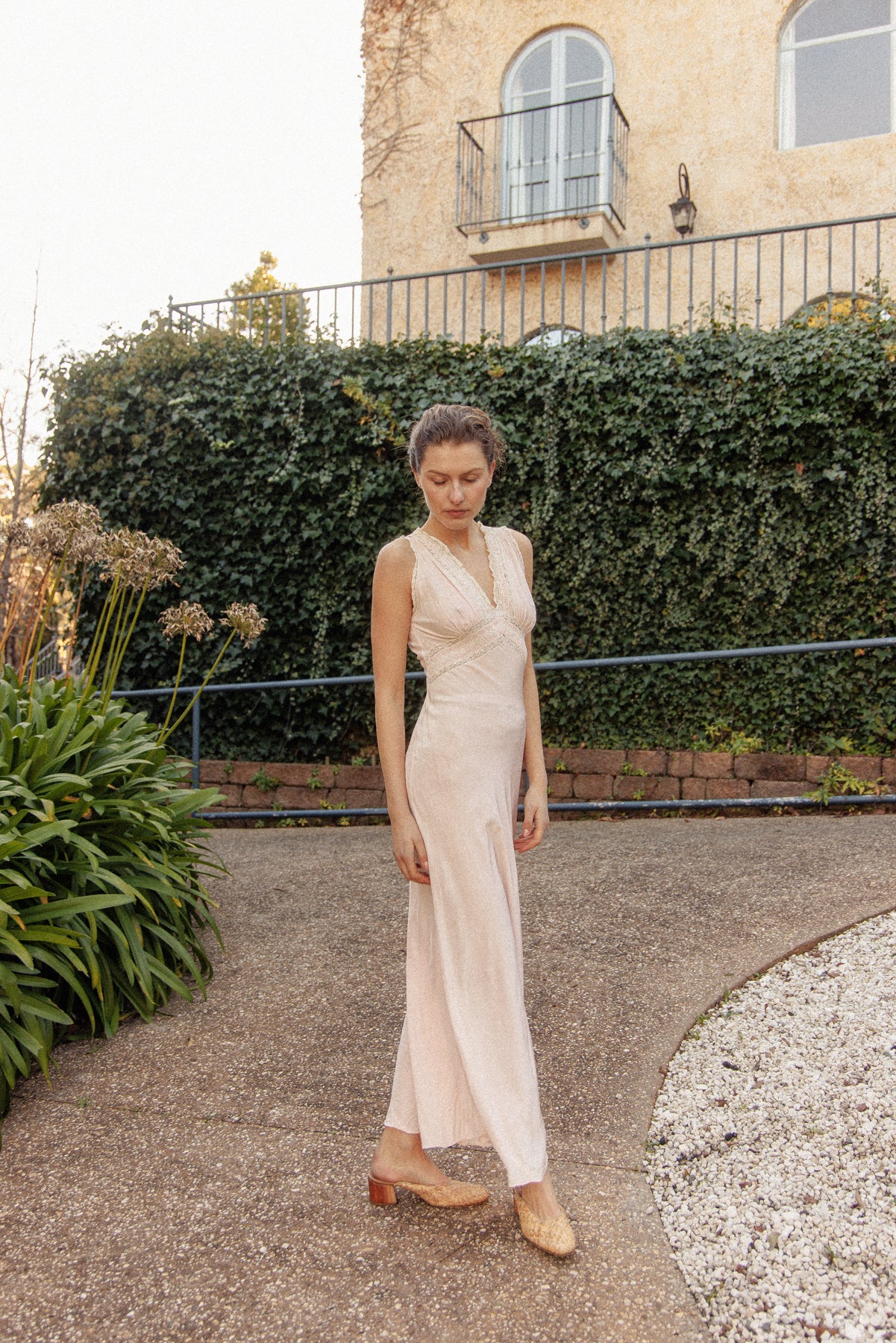 VINTAGE 1940's Pink Bias Cut Nightgown Maxi Dress S