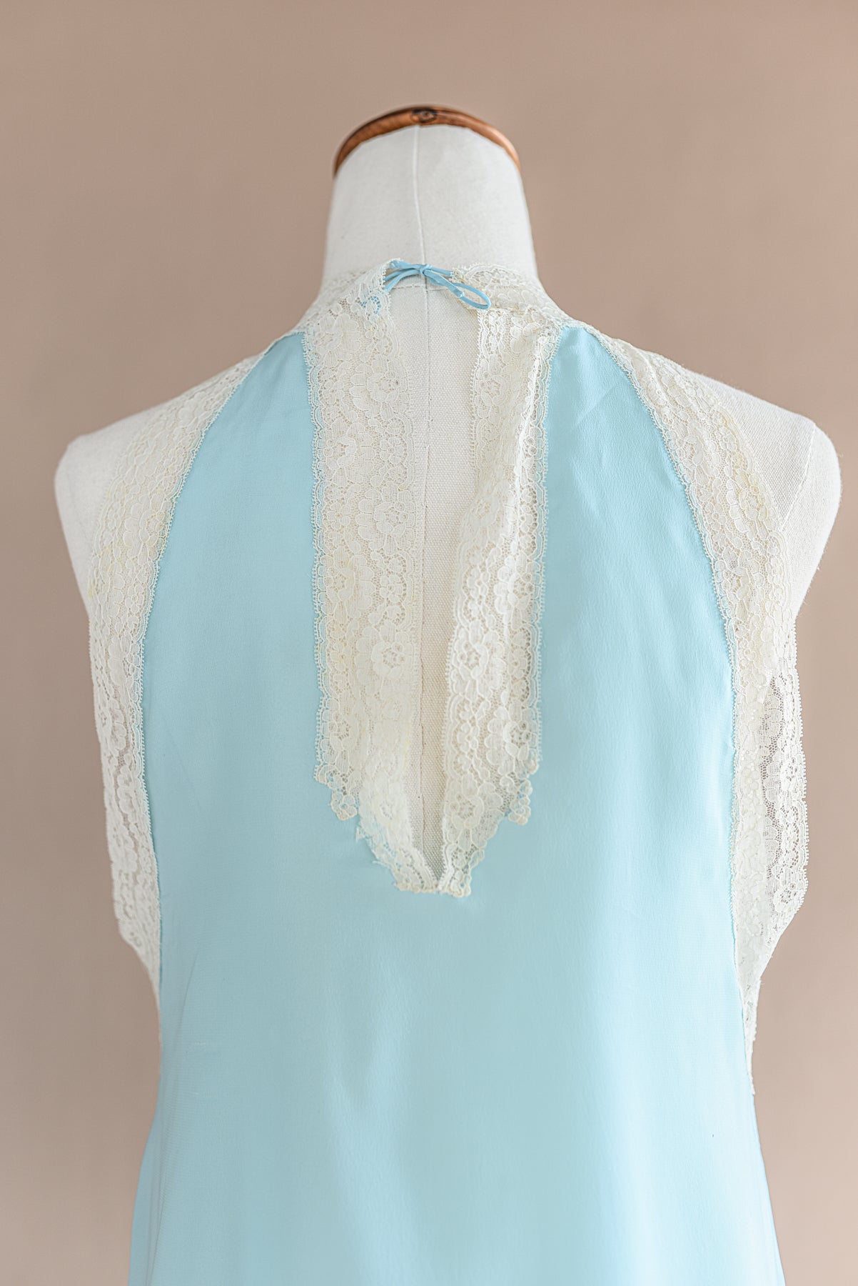 VINTAGE 1940's Reversible Blue High Neck Nightgown Dress S/M/L