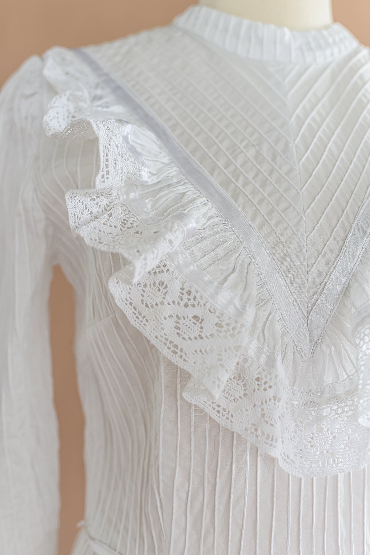 VINTAGE 1960's White Pintuck Cotton High Neck Mexican Wedding Dress S