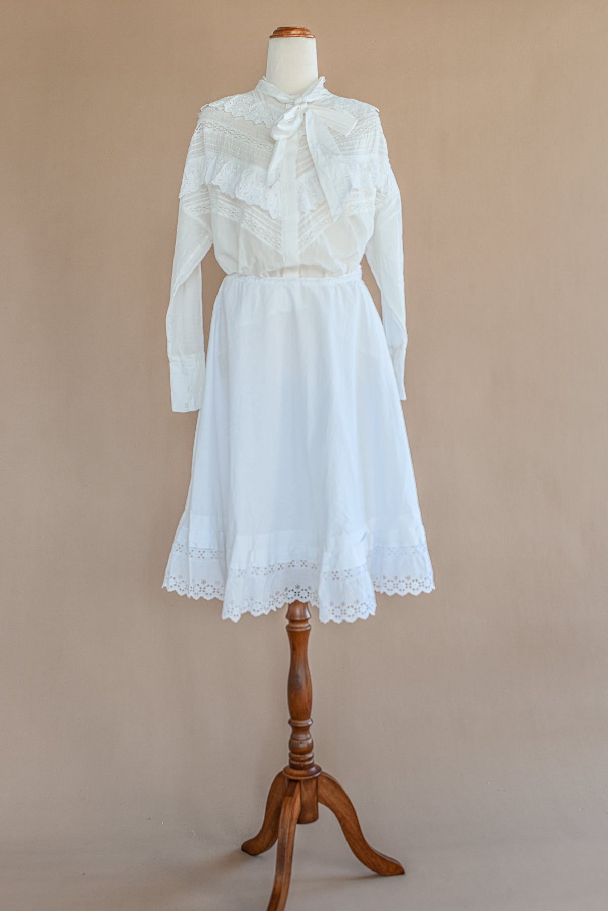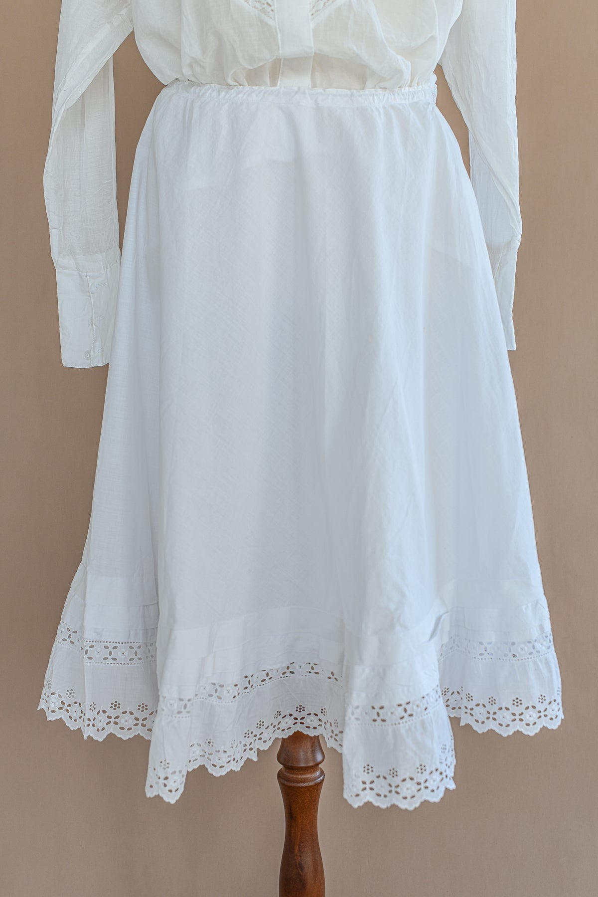 VINTAGE Antique White Cotton Petticoat Skirt S/M