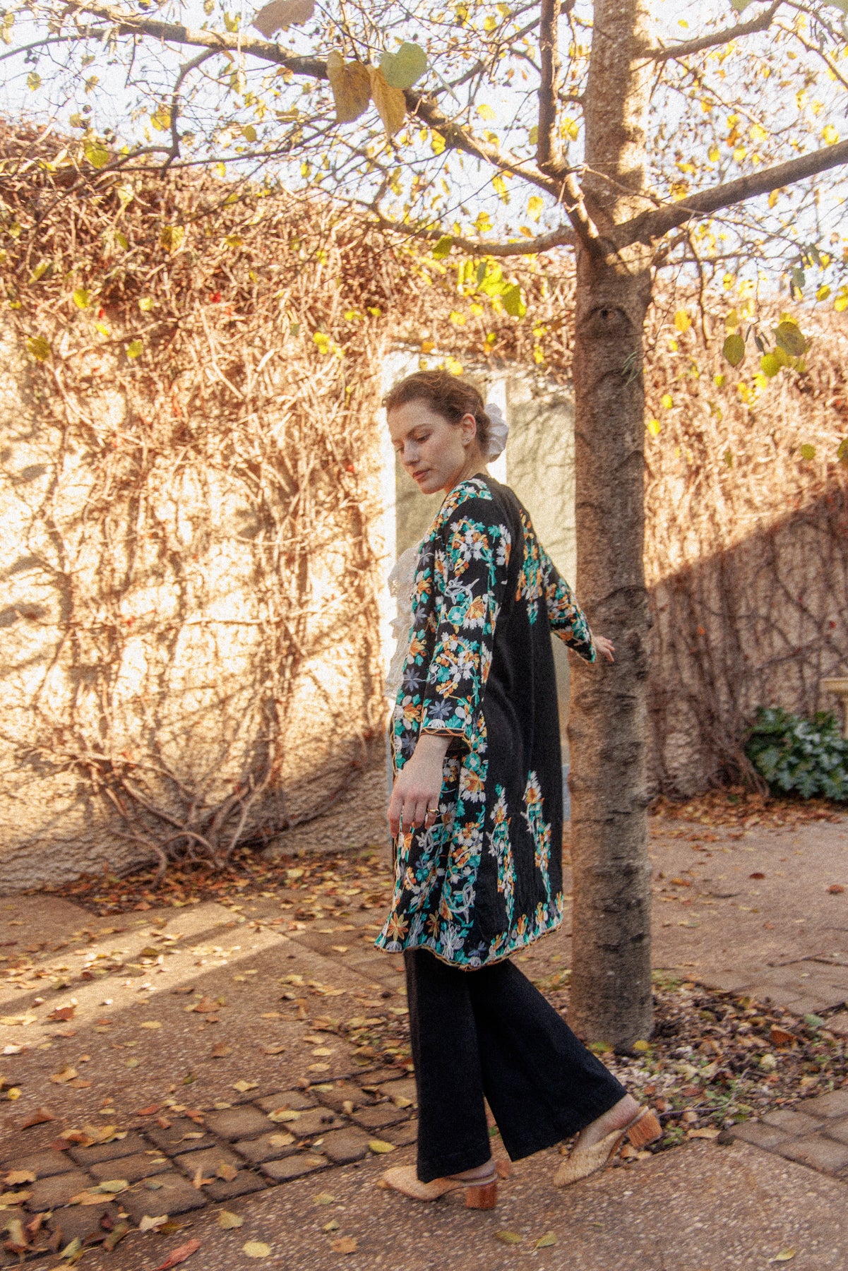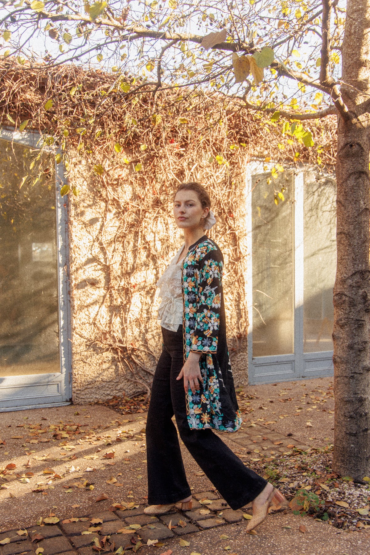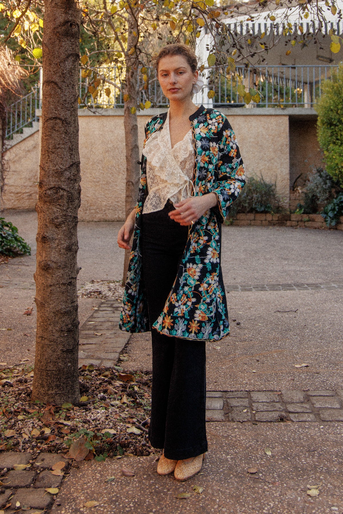 VINTAGE Black Cotton Embroidered Indian Kashmiri Jacket S/M