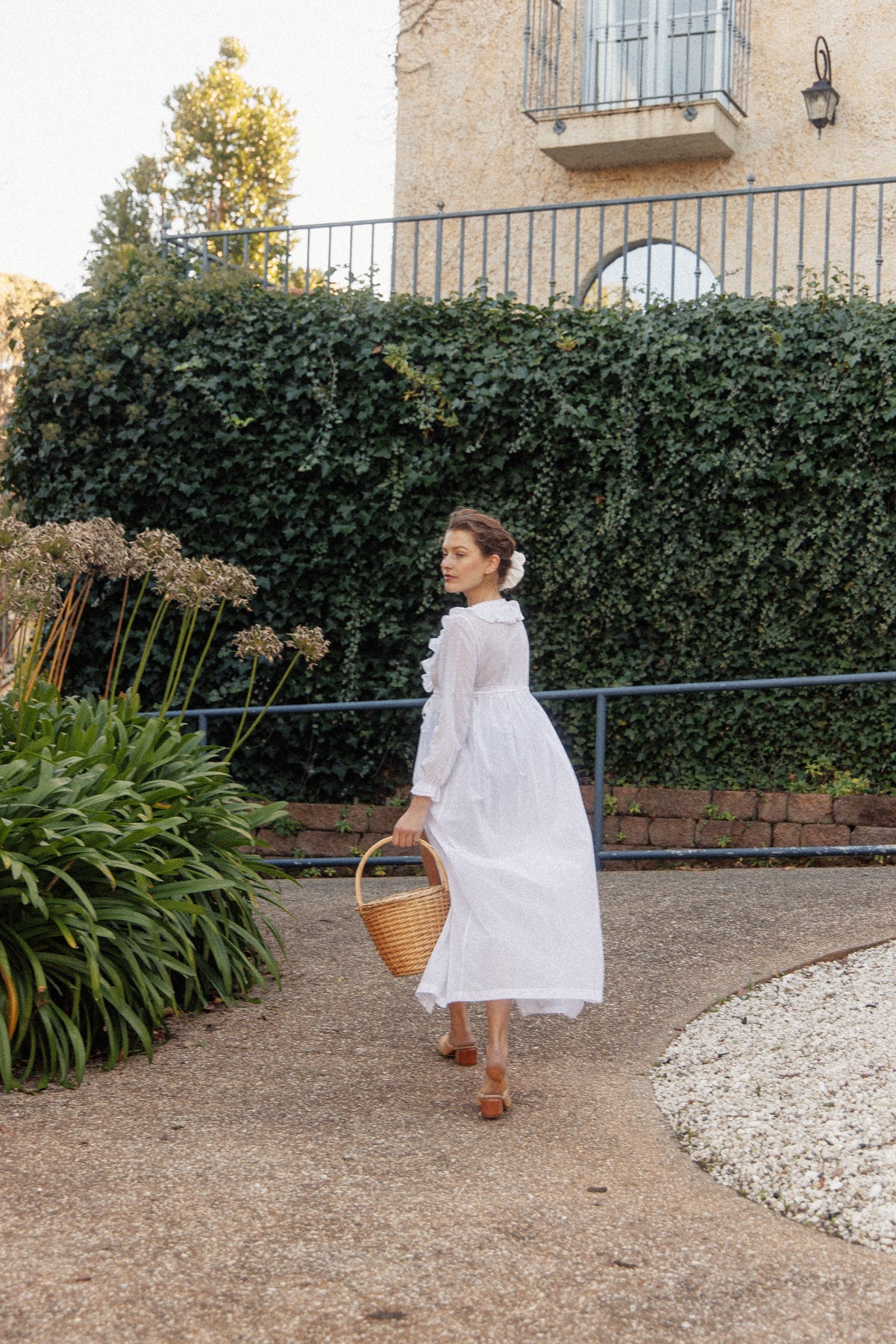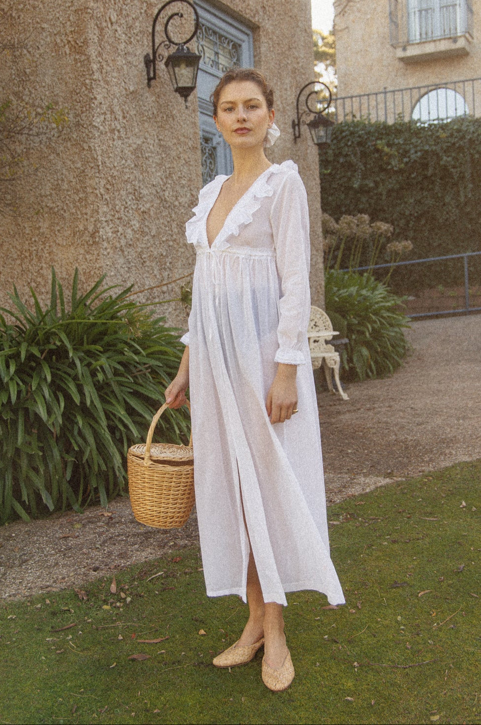 VINTAGE Cotton Voile Ruffled Peignoir Robe/ Dress S/M