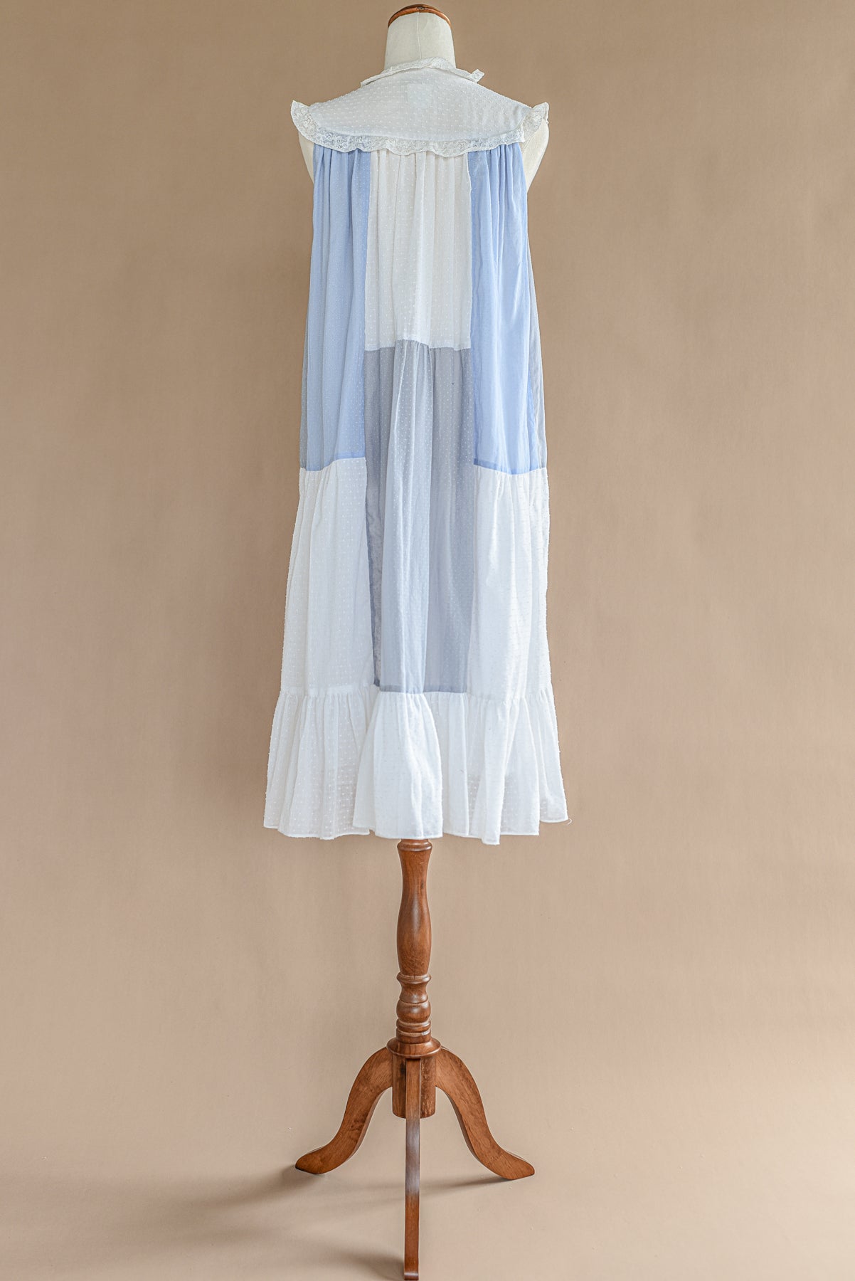 VINTAGE Sally Brown Swiss Dot Cotton Blue And White Patchwork Midi Dress S/M